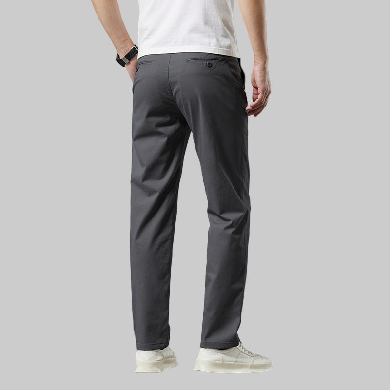 Crafted from breathable cotton, these men's straight-leg pants provide comfort and ease during warm summer days. Their classic fit ensures a timeless silhouette while allowing unrestricted movement. Ideal for casual outings or relaxed work environments, these pants combine durability with a lightweight feel perfect for seasonal wear.