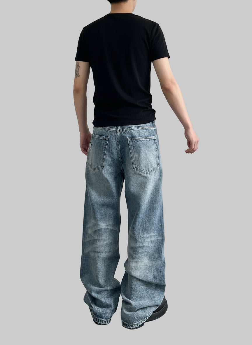 These men's high waist jeans feature a washed finish and a straight leg cut for a timeless silhouette. Designed to sit comfortably at the waist, they provide a flattering fit that suits various body types. The durable fabric ensures lasting wear, making these jeans a reliable choice for everyday style with a refined, expert touch.
